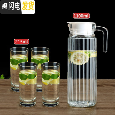 三维工匠耐热玻璃冷水壶家用可高温凉水壶果汁扎壶防爆大容量凉水杯 条纹1.1送215杯子4只