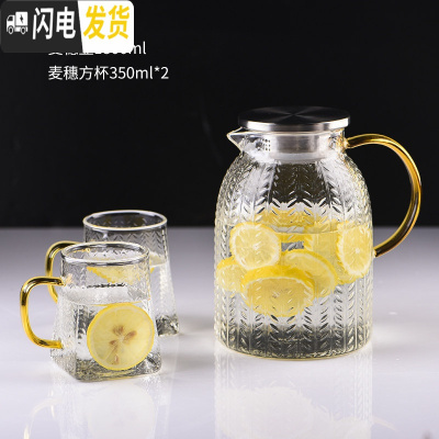 三维工匠冷水壶凉水壶家用超大可高温防爆玻璃水壶凉白开水壶凉茶壶果汁壶 麦穗壶+麦穗方杯*2