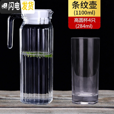 三维工匠亚克力条纹壶PC透明大容量冷水壶餐厅酒吧果汁壶塑料防摔耐热扎壶 0.8条纹壶凉水壶