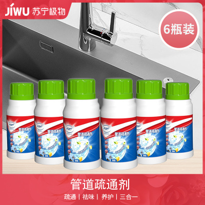 6瓶装浴室毛发堵塞管道疏通剂厨房地漏排水管除臭厕所马桶通渠C1918苏宁极物