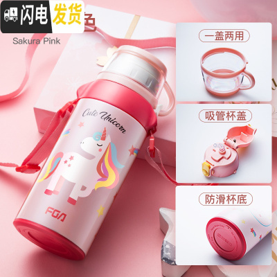三维工匠儿童保温水杯子男女便携带吸管两用学生宝宝保温杯大容量水壶 粉色