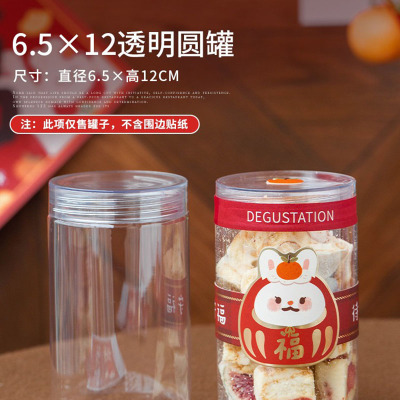 兔年新年2023盲盒礼盒包装盒糖果曲奇饼干雪花酥糯米船牛轧糖盒子 6.5x12透明圆罐6个