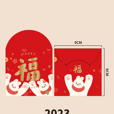 兔年新年2023盲盒礼盒包装盒糖果曲奇饼干雪花酥糯米船牛轧糖盒子 短款福字萌兔红包10个