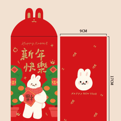 兔年新年2023盲盒礼盒包装盒糖果曲奇饼干雪花酥糯米船牛轧糖盒子 长款新年快乐橘树兔子红包10个