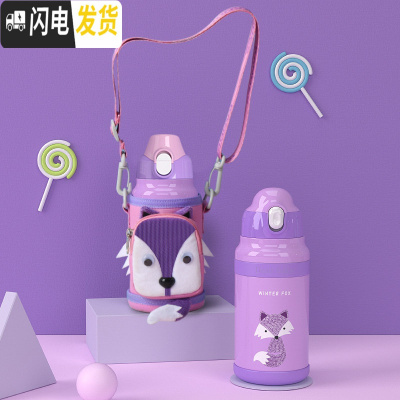 三维工匠儿童保温杯带吸管两用幼儿园女宝宝316不锈钢水壶小学生便携 紫荆狐狸+防喷烫/感温变色设计+无缝316+一杯两盖