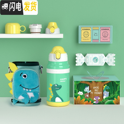三维工匠儿童保温杯带吸管两用幼儿园女宝宝316不锈钢水壶小学生便携 奇异恐龙+防喷烫/感温变色设计+无缝316+一杯三盖