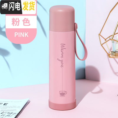 三维工匠保温杯男女士学生儿童ins简约可爱便携小水杯杯子大容量 桃花粉