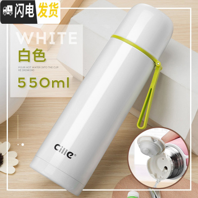 三维工匠保温杯女大容量不锈钢儿童水杯小学生可爱户外便携杯子水壶 白色550[304不锈钢大容量]