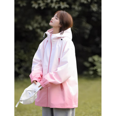 年春秋季渐变色户外防风男女情侣款冲锋衣运动休闲夹克外套