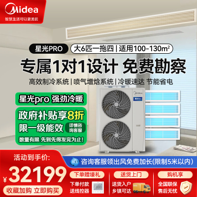 美的家用中央空调变频星光pro带水泵多联机6匹一拖四智能家居空调MDS-140W-E01-XGpro(GNX)一拖多