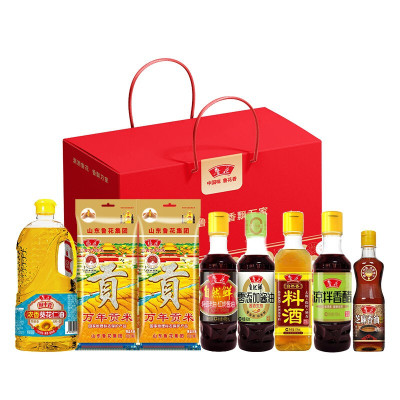 鲁花自然鲜酱香酱油1.28L+鲁花生鲜蚝油718G+鲁花料酒1.78L+鲁花小磨香油350ML调味组合装 粮油 芝麻油