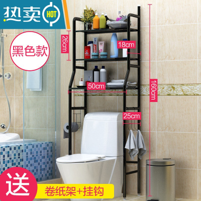 敬平卫生间浴室置物架落地马桶架厕所洗手间免打孔洗衣机上方收纳架子 三层典雅黑-马桶架❤ 160*50*26