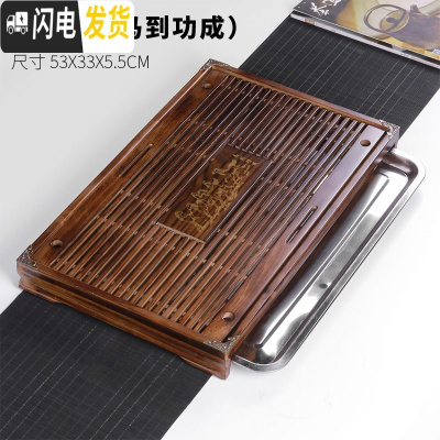 三维工匠茶盘实木家用客厅功夫茶盘简约不锈钢茶盘托盘储水排水茶台 实木柴烧[马到成功]+不锈钢底盘53*33*5.5C茶具