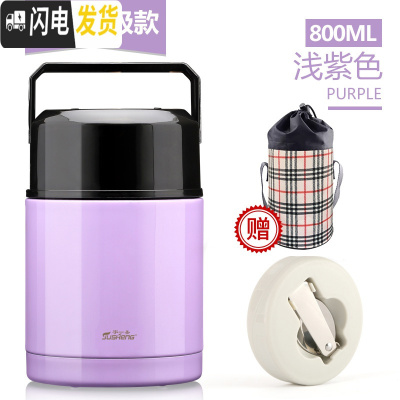 三维工匠焖烧壶焖烧杯超长保温饭盒304不锈钢焖烧罐成人便当带饭盒 浅紫色800-级送杯套餐勺