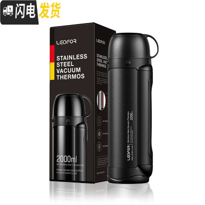 三维工匠304不锈钢户外保温水壶大号便携保温杯大容量旅游暖热水壶 磨砂黑2000