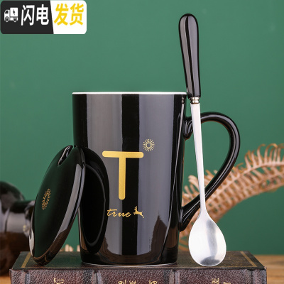 三维工匠创意杯子马克杯北欧ins女可爱个性咖啡杯带盖勺潮流少女陶瓷水杯 T—黑带盖勺咖啡器具
