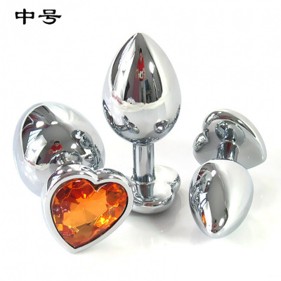 心型金属肛塞肛栓后庭器具男女肛自玩不锈钢性工具成人用中号 中号底钻白色透明色