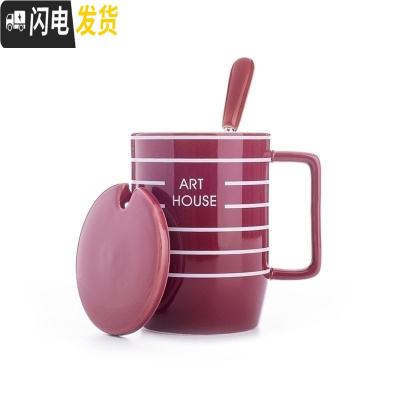 三维工匠通用情侣款风杯子一套磨砂带盖个性有盖家用咖啡杯男女 红色-条纹杯咖啡器具