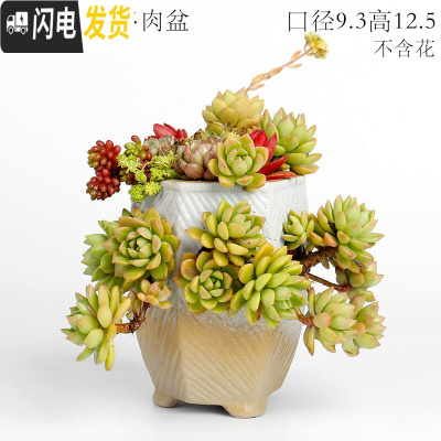 三维工匠复古创意个性多肉悬崖老桩高花盆缺口造型控型盆陶瓷绿植老庄花器 三孔浅蓝多肉盆 中等花盆容器