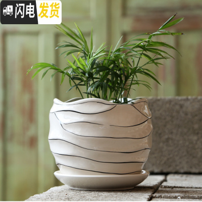 三维工匠陶瓷花盆北欧特大号中号简约桌面多肉盆栽绿萝吊兰带托盘 酒红色301复古彩 特大花盆容器
