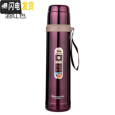 三维工匠保温杯1500真空超长保温2便携户外旅行保温壶304不锈钢大容量 酒红色1.5+壶包