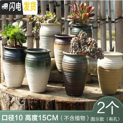 三维工匠多肉花盆创意个性复古粗陶小老桩盆大口径肉植物陶瓷 款15 中小花盆容器