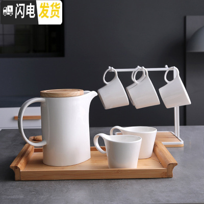 三维工匠北欧冷水壶陶瓷可高温客厅家用大容量凉水壶水杯子茶具套装带龙头 新水壶+架(6.8)