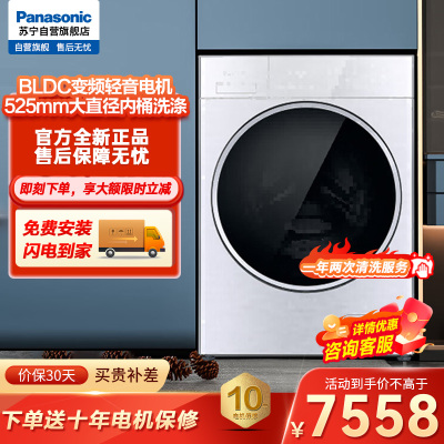 松下(Panasonic) XQG120-NDBNE 全自动滚筒12公斤洗衣机 智能投放 光动银除菌
