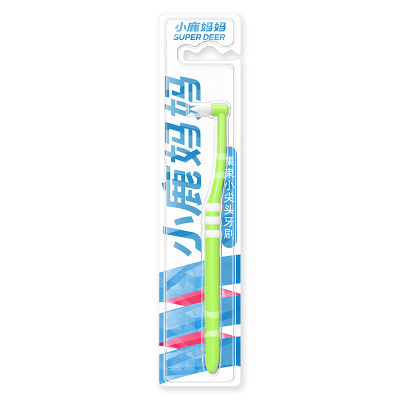 小鹿妈妈(FAWN MUM)单束牙刷正畸牙刷智齿矫正小头牙刷 平头绿色2支
