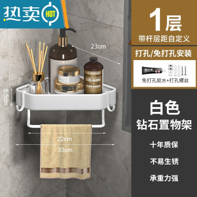 敬平免打孔卫生间沐浴露置物架浴室架子墙角厕所转角壁挂淋浴房三角架 白色♥加厚加大钻石款♥→单层 带杆浴室置物架
