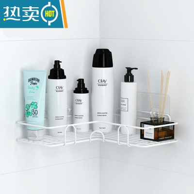 敬平卫生间浴室三角置物架子壁挂式免打孔厕所洗手间沐浴露转角收纳架 三角白色无挂钩浴室置物架