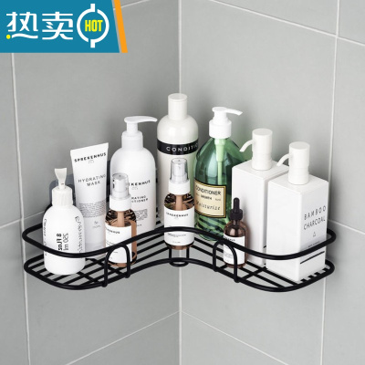 敬平卫生间浴室三角置物架子壁挂式免打孔厕所洗手间沐浴露转角收纳架 三角黑色无挂钩浴室置物架