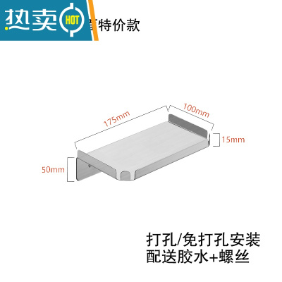 敬平304不锈钢厕所放手机小置物架免打孔公共卫生间浴室沐浴露支托盘 天蓝色 拉丝折边平面打孔浴室置物架