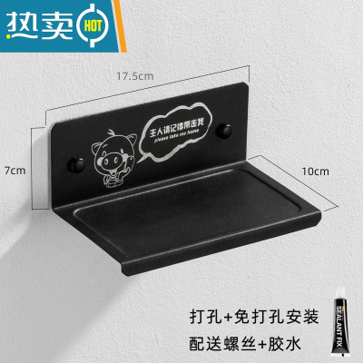 敬平304不锈钢厕所放手机小置物架免打孔公共卫生间浴室沐浴露支托盘 藏青色 黑色带标语免打孔浴室置物架