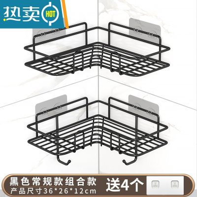 敬平免打孔卫生间浴室三角置物架子厕所洗手间沐浴露壁挂式转角收纳架 三角黑色大号[2个]浴室置物架