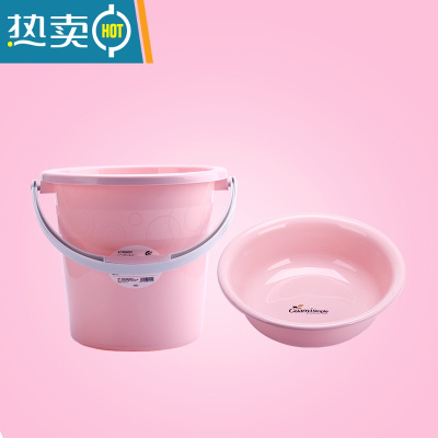 敬平加厚塑料储水桶手提洗衣桶家用收纳桶学生桶宿舍圆桶洗车桶拖把桶 18L北欧粉+小号盆