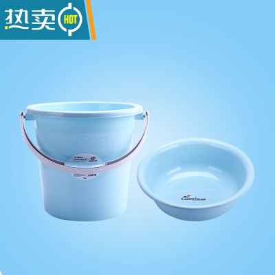 敬平加厚塑料储水桶手提洗衣桶家用收纳桶学生桶宿舍圆桶洗车桶拖把桶 18L北欧蓝+小号盆