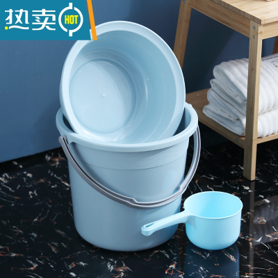 敬平塑料水桶学生宿舍洗衣桶手提加厚洗澡桶家用多功能储水桶圆形桶盆 加大号 蓝色 桶+盆+勺