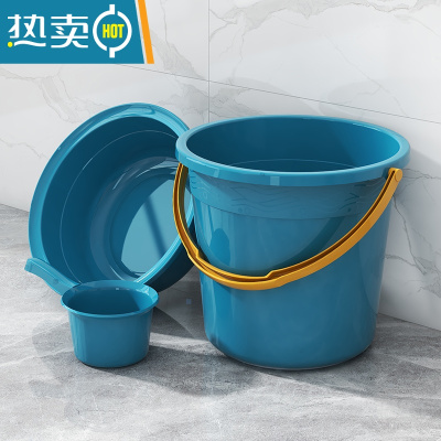敬平塑料水桶学生宿舍洗衣桶手提加厚洗澡桶家用多功能储水桶圆形桶盆 加大号 深湖蓝 桶+盆+勺