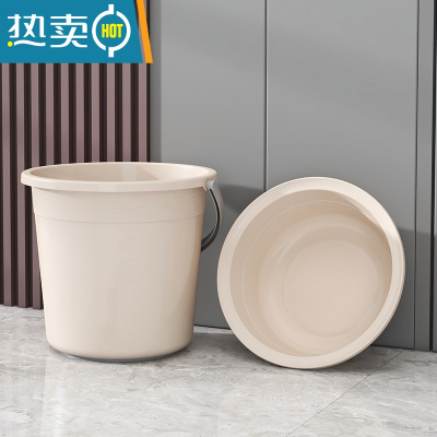 敬平水桶家用储水用手提塑料桶加厚大号洗澡宿舍洗衣桶桶盆套装洗车桶 大号卡其[水桶+脸盆]