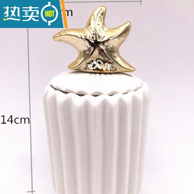 敬平北欧风棉签收纳盒陶瓷牙签罐棉签罐带盖陶瓷小罐摆件小物件储物罐 海星
