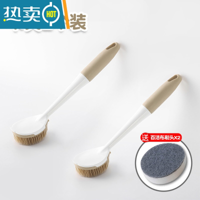 敬平厨房家用长柄锅刷不粘锅去污硅胶洗碗刷水槽灶台清洁刷不伤锅器 卡其(2个装)刷子