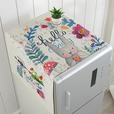 北欧风格滚筒洗衣机罩盖布单开双开冰箱盖巾防尘罩棉麻布艺 时尚兔 双开门冰箱盖巾(70*170cm)