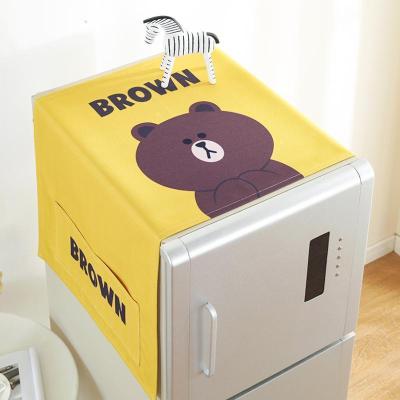 北欧风格滚筒洗衣机罩盖布单开双开冰箱盖巾防尘罩棉麻布艺 黄色小熊 双开门冰箱盖巾(70*170cm)