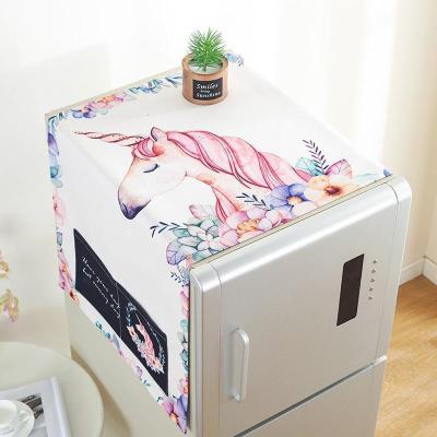 北欧风格滚筒洗衣机罩盖布单开双开冰箱盖巾防尘罩棉麻布艺 独角兽 双开门冰箱盖巾(70*170cm)