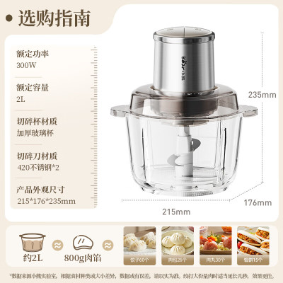 小熊绞肉机家用 碎肉机 电动多功能料理搅拌机饺子肉馅蒜蓉机 搅肉机 2L大容量全不锈钢杯