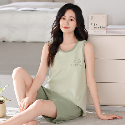 夏季莫代尔睡衣女背心短裤带胸垫套装休闲宽松无袖睡衣大码可外穿