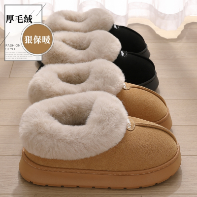 男士大码拖鞋包跟冬季室内厚底防滑毛绒保暖带后跟情侣家居鞋女