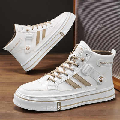 高帮板鞋冬季新款潮鞋大码 百搭小众运动皮面小白鞋防滑休闲鞋男