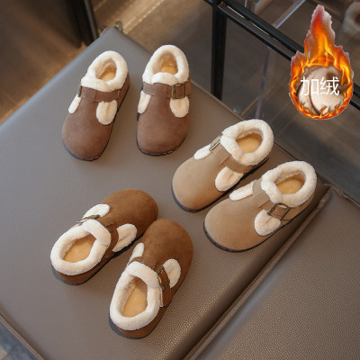 儿童勃肯鞋冬季新款加绒保暖女童豆豆鞋宝宝二棉鞋小童毛毛鞋